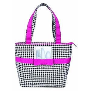 Lady Jayne Ltd. Insulated Lunch Tote, Black And White Hounds Tooth With Pink Accent